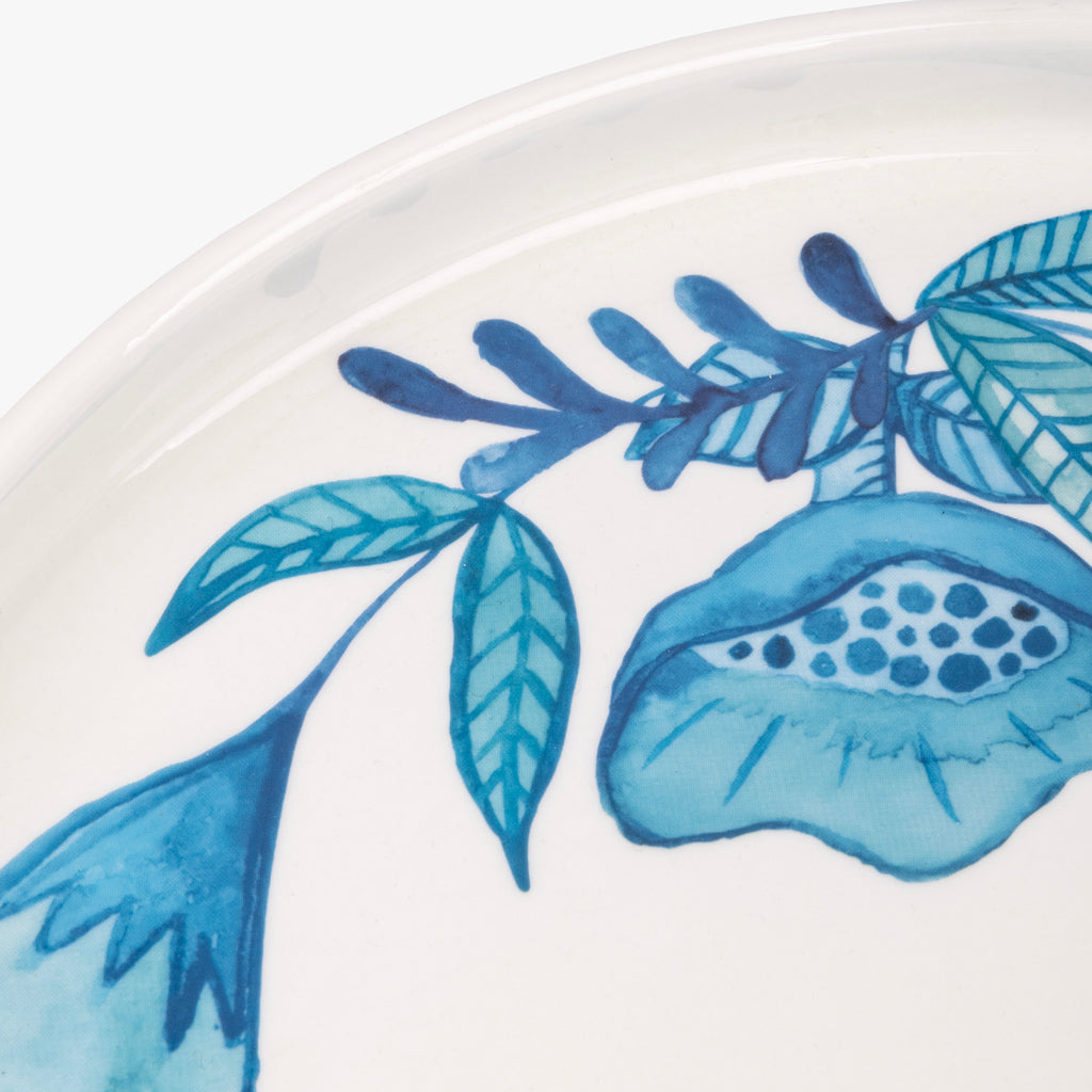 Une symbiose entre oiseaux et végétation issue des tapisseries de Castelo Branco associée au bleu profond des azulejos du XVIIIe siècle est peinte originalement à la main avec la technique de l’aquarelle, donnant naissance à un service élégant.